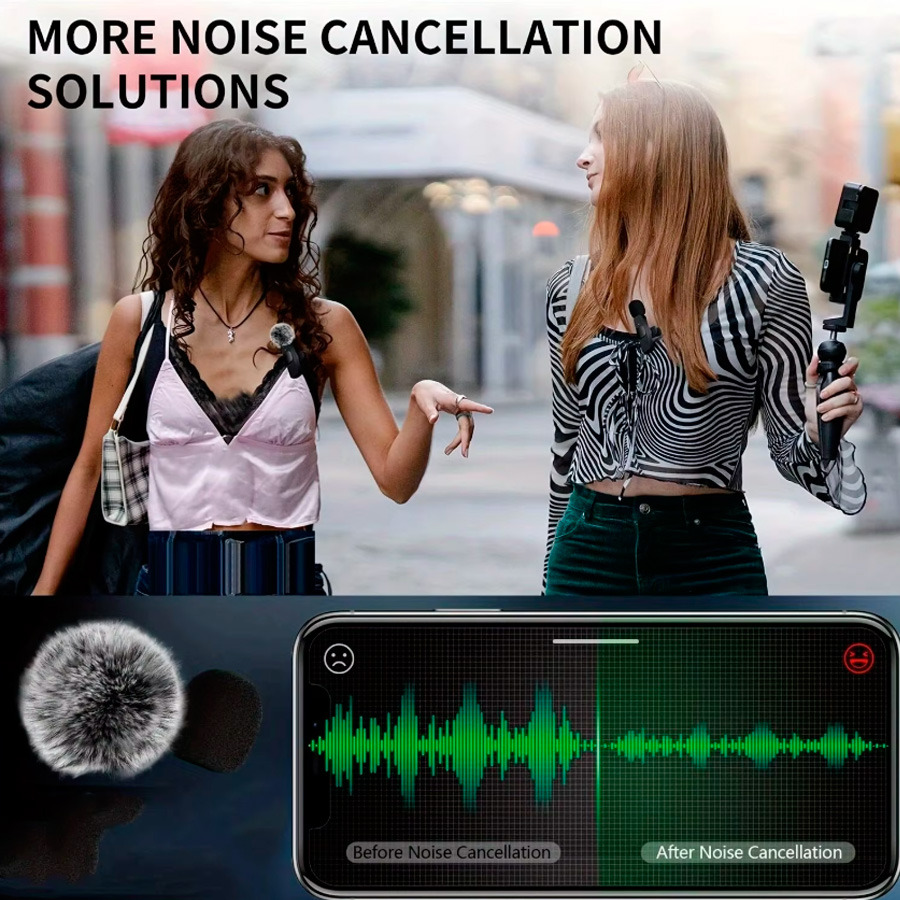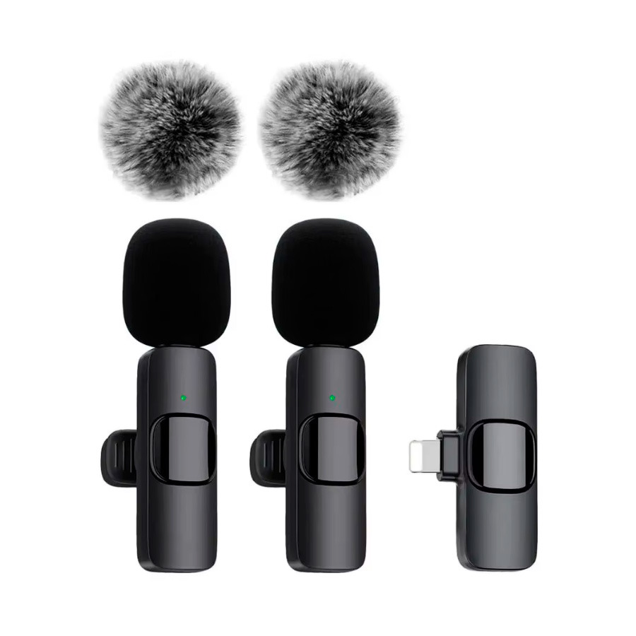 Відгуки Бездротовий подвійний петличний мікрофон для iPhone (Lightning), 2 шт., для блогерів, інтерв’ю, презентацій, Plug & Play + шумопоглинаючий вітрозахист у подарунок (27258)