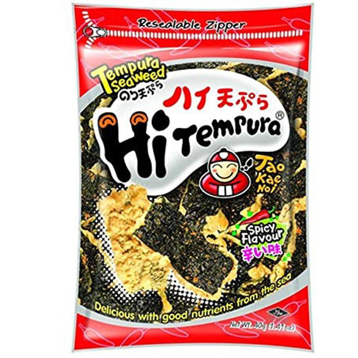 Чіпси-норі Hi Temura гострі приготовлені з морських водоростей, багаті поживними речовинами, такими як йод і вітамін З, що робить їх легкою закускою.