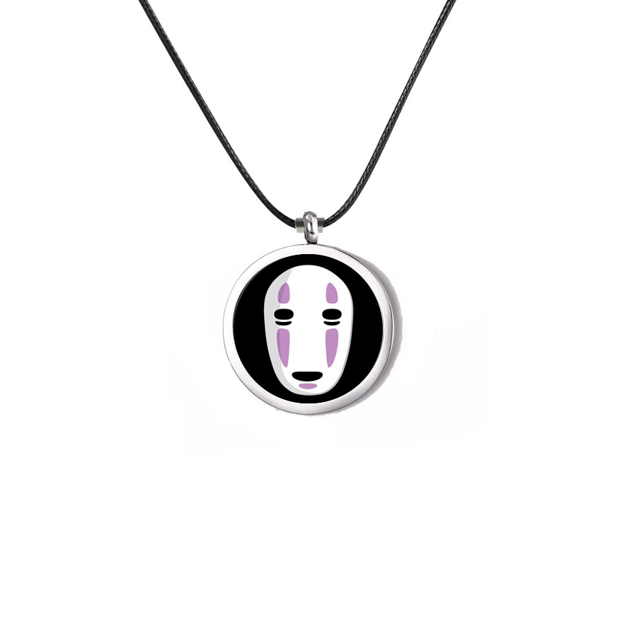Зануртеся у магічний світ Studio Ghibli разом із цим металевим кулоном, що зображує Безликого (Kaonashi) – одного з найзагадковіших персонажів аніме "Віднесені привидами" (Spirited Away). Його мінімалістичний дизайн на чорному фоні підкреслює містичну атмосферу цього культового героя.