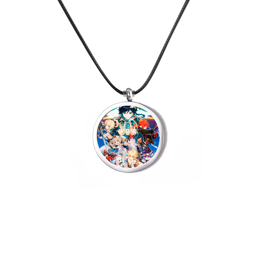 Відгуки Кулон металевий з персонажами Genshin Impact на чорному шнурку 45 см (27298)
