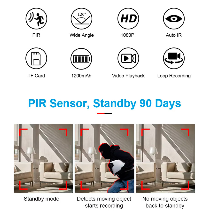 Міні-камера Digital Lion MD29 – це оновлена версія моделі MD20, оснащена покращеним датчиком руху та збільшеним часом автономної роботи. Камера записує у Full HD 1080P і працює до 9 годин у безперервному режимі або до 90 днів у режимі очікування.