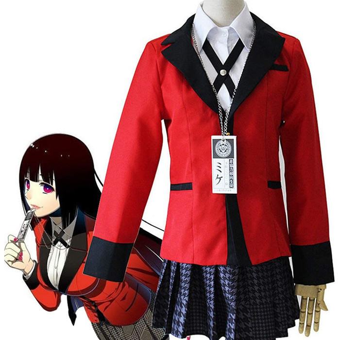 Косплей шкільна форма академії Хяккао Божевільний Азарт - Kakegurui XL, яку носять учні з сімей, які мають політичний та фінансовий вплив у світі. У закладі азартними іграми керує студентська рада. Тут також існує ієрархія, проти якої ніхто не сміє йти, інакше буде розправа.