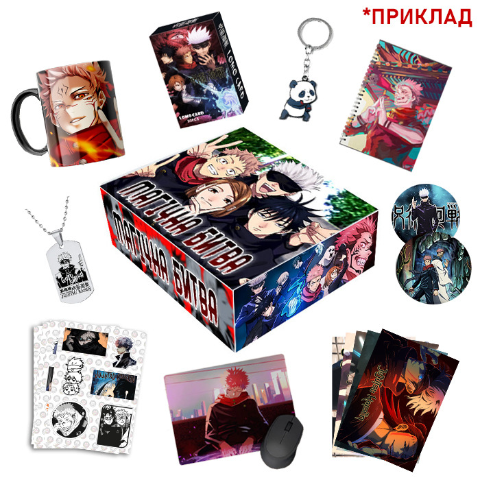 Подарунковий набір "Jujutsu Kaisen" - це ідеальний подарунок для справжніх прихильників цієї захоплюючої аніме-серії. Цей набір містить різноманітні предмети, які не лише поглиблять ваше відчуття спільноти з улюбленими героями, але й дозволять вам продемонструвати свою пристрасть до "Jujutsu Kaisen".