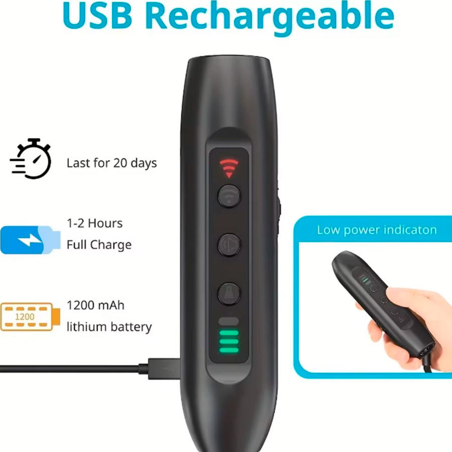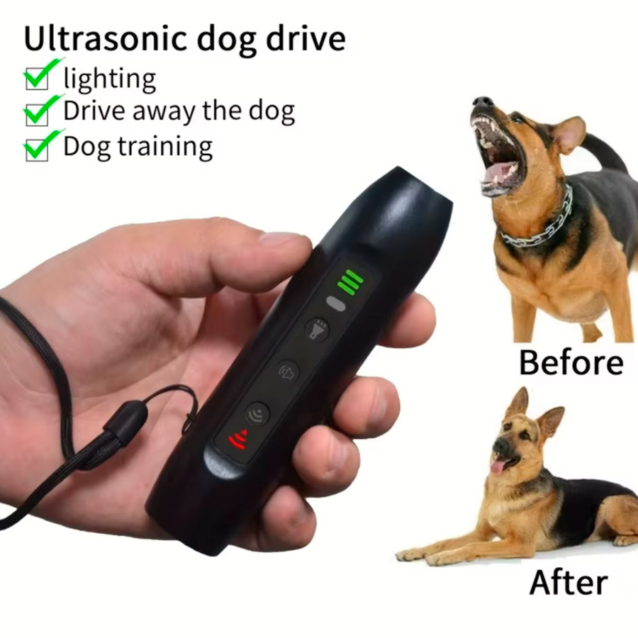 Відгуки Потужний ультразвуковий відлякувач собак професійний з ліхтариком і батарейкою в комплекті USB-зарядка (27251)