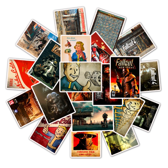 Набір глянсових вінілових стікерів, що складається з різних наклейок з атрибутикою з популярної постапокаліптичної гри - Fallout 4! Яка вже давно здобула серця шанувальників!