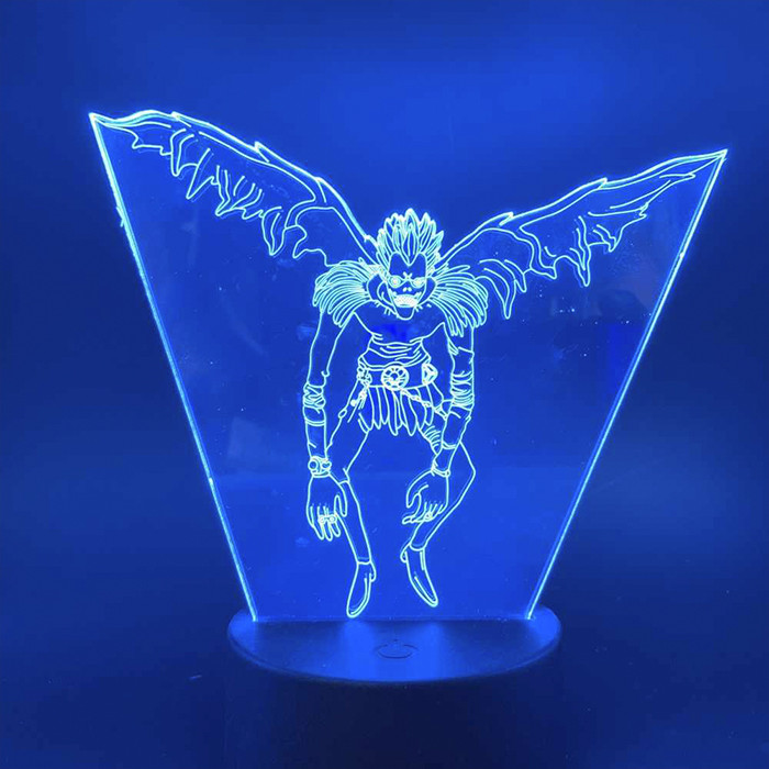Настільний світильник-нічник Рюк у польоті - Зошит смерті Ryuk Death Note 3D USB 16 кольорів відрізняється високою якістю. Зображено на виробі бог смерті, який через нудьгу підкидає страшний зошит у світ людей.